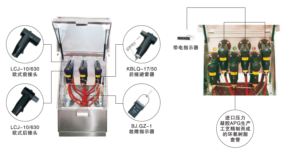 歐式電纜分接箱是近年來廣泛用于電力配網系統中的電纜化工程設備,它的主要特點是雙向開門、利用穿墻套管作為連接母排,具有長度小、電纜排列清楚、三芯電纜不需要大跨度交叉等優點。其所采用的電纜接頭符合DIN47636標準。一般采用額定電流630A螺栓固定連接式電纜接頭。